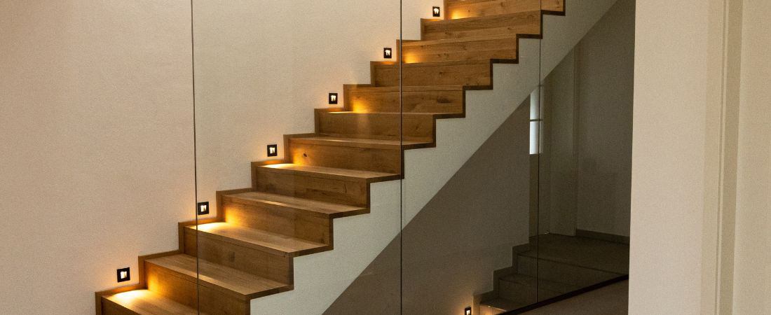 - Blendfreie Ausleuchtung von Treppenstufen durch versteckte Anordnung der Leuchtfläche bei nur 1,5W Energieverbrauch
