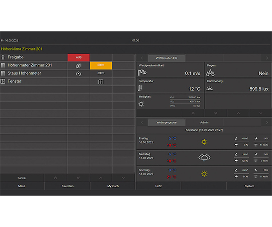 Bedient wird die KNX-Anlage über eine Visualisierungsoberfläche, die auch Ärzten den Zugriff auf die Einstellparameter des Höhenklimas ermöglicht (Bild 5).